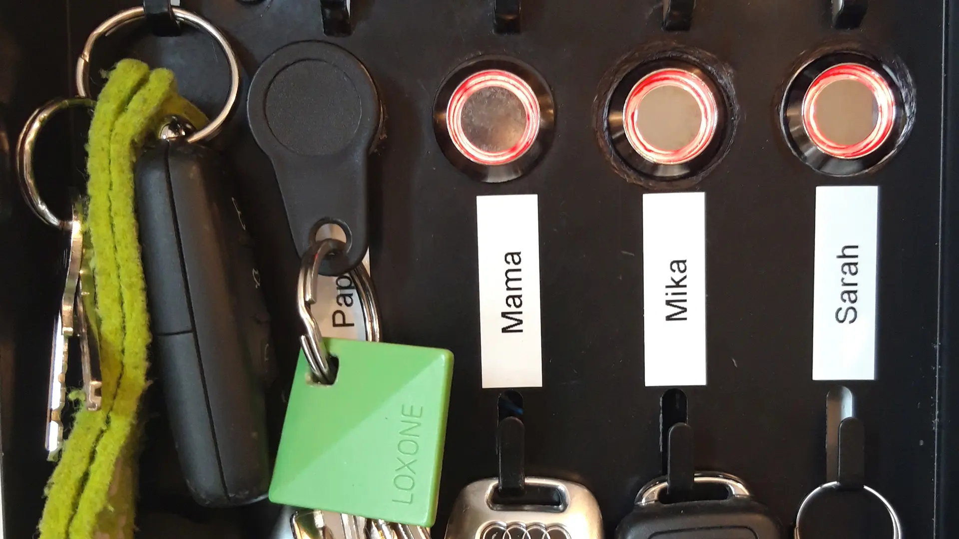 Kipfstuhls 的智能家居配备了智能钥匙架。该建筑使用磁性 iButton 来准确了解谁在家。当爸爸妈妈 Kipfstuhl 回家时,智能家居不仅会启动咖啡机和各自最喜欢的播放列表 - 如果 Mika 或他的姐姐回家,机器人割草机必须“回到充电站”,因为那样花园就完全属于两个孩子。